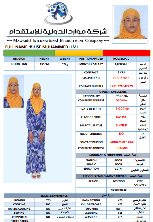 نوع الخدمة نوع الخدمة استقدام تأجير نقل خدمات الجنسية الجنسية الفلبين الهند اثيوبيا بروندي بنغلاديش أوغندا سريلانكا كينيا اندونيسيا غانا المهنة عاملة منزلية سائق خاص عاملة عناية الديانة مسلم غير مسلم الخبرة سبق العمل لم يسبق العمل بحث مسح IZOMPORA EVELYNE بروندي العمر 34 الخبرة لم يسبق العمل الديانة غير مسلم رقم الملف P00050589 حجز العاملة السير الذاتية KANEZA GRACE بروندي العمر 26 الخبرة لم يسبق العمل الديانة غير مسلم رقم الملف P00109460 حجز العاملة السير الذاتية BILISE MUHAMMED ILMI اثيوبيا العمر 26 الخبرة لم يسبق العمل الديانة غير مسلم رقم الملف EP9143943 حجز العاملة السير الذاتية BEKELU DEBELA ALEMU اثيوبيا العمر 27 الخبرة لم يسبق العمل الديانة غير مسلم رقم الملف EP8034638 حجز العاملة السير الذاتية DAYIME TURE FEKO اثيوبيا العمر 33 الخبرة لم يسبق العمل الديانة غير مسلم رقم الملف EP8695485 حجز العاملة السير الذاتية NYANDWI EVELYNE بروندي العمر 36 الخبرة لم يسبق العمل الديانة غير مسلم رقم الملف P00050619 حجز العاملة السير الذاتية NSHIMIRIMANA CLARISTE بروندي العمر 29 الخبرة لم يسبق العمل الديانة غير مسلم رقم الملف P00114998 حجز العاملة السير الذاتية MUGISHA RACHELLE بروندي العمر 27 الخبرة لم يسبق العمل الديانة غير مسلم رقم الملف P00132970 حجز العاملة السير الذاتية NIYONGERE JEANNETTE بروندي العمر 35 الخبرة لم يسبق العمل الديانة غير مسلم رقم الملف P00123767 حجز العاملة السير الذاتية NIMBONA THERESE بروندي العمر 34 الخبرة لم يسبق العمل الديانة غير مسلم رقم الملف OP0339847 حجز العاملة السير الذاتية 7 8 9 10 11 12