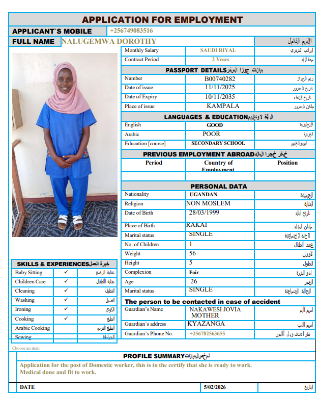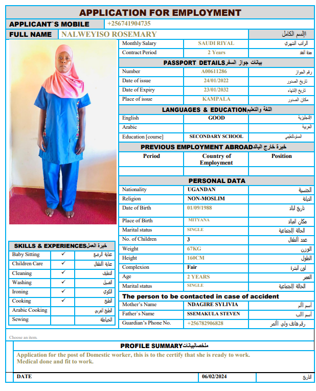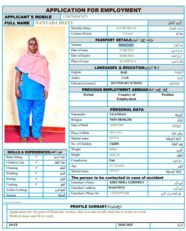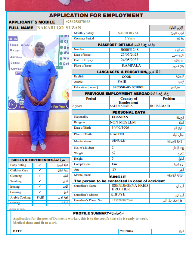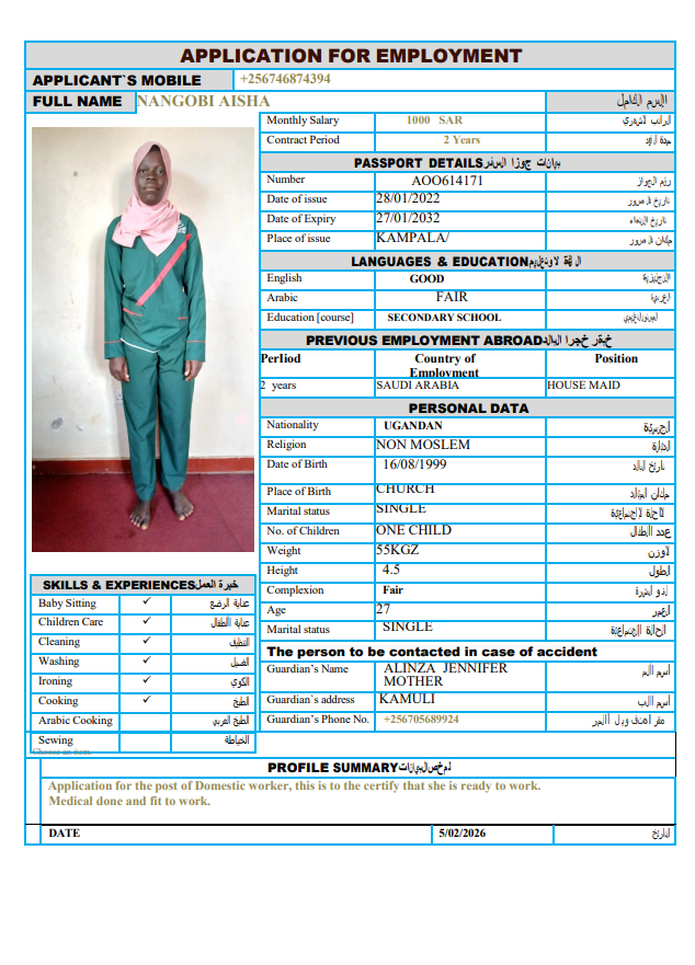 نوع الخدمة نوع الخدمة استقدام تأجير نقل خدمات الجنسية الجنسية الفلبين الهند اثيوبيا بروندي بنغلاديش أوغندا سريلانكا كينيا اندونيسيا غانا المهنة عاملة منزلية سائق خاص عاملة عناية ممرضة منزلية الديانة مسلم غير مسلم الخبرة سبق العمل لم يسبق العمل بحث مسح ttuta aisha أوغندا العمر 24 الخبرة لم يسبق العمل الديانة غير مسلم رقم الملف b00407294 حجز العاملة السير الذاتية nangobi أوغندا العمر 27 الخبرة لم يسبق العمل الديانة غير مسلم رقم الملف a00614171 حجز العاملة السير الذاتية ntabadde أوغندا العمر 24 الخبرة لم يسبق العمل الديانة غير مسلم رقم الملف b00561107 حجز العاملة السير الذاتية nakabugo أوغندا العمر 30 الخبرة لم يسبق العمل الديانة غير مسلم رقم الملف b00051248 حجز العاملة السير الذاتية NASSUUNA DYNA أوغندا العمر 29 الخبرة لم يسبق العمل الديانة غير مسلم رقم الملف a0020746 حجز العاملة السير الذاتية nakiwala أوغندا العمر 31 الخبرة لم يسبق العمل الديانة غير مسلم رقم الملف b00737993 حجز العاملة السير الذاتية namuga أوغندا العمر 32 الخبرة لم يسبق العمل الديانة غير مسلم رقم الملف b00653261 حجز العاملة السير الذاتية NALUGEMWA DOROTHY أوغندا العمر 26 الخبرة لم يسبق العمل الديانة غير مسلم رقم الملف B00740282 حجز العاملة NALWEYISO ROSEMARY أوغندا العمر 37 الخبرة سبق العمل الديانة مسلم رقم الملف A00611286 حجز العاملة NANTABA DIZZY أوغندا العمر 38 الخبرة سبق العمل الديانة مسلم رقم الملف B00437439 حجز العاملة 1 2 3 4