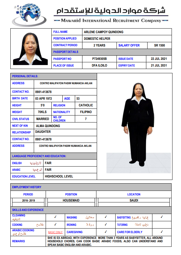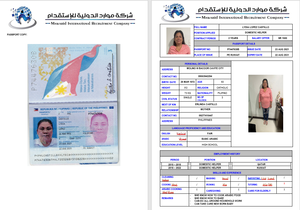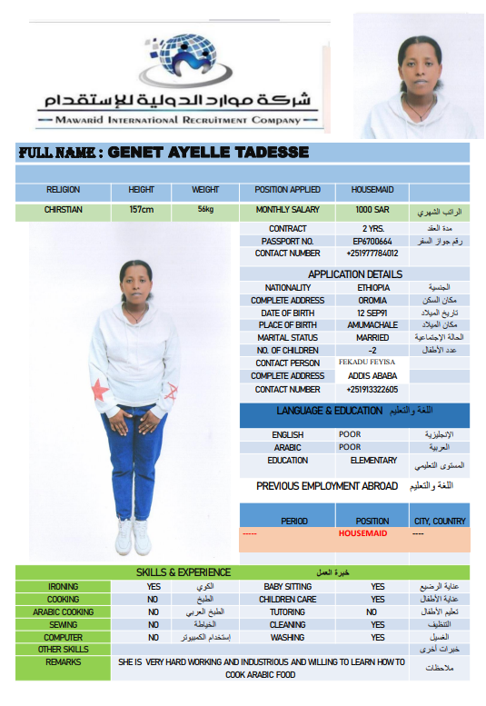 نوع الخدمة نوع الخدمة استقدام تأجير نقل خدمات الجنسية الجنسية الفلبين الهند اثيوبيا بروندي بنغلاديش أوغندا سريلانكا كينيا اندونيسيا غانا المهنة عاملة منزلية سائق خاص عاملة عناية الديانة مسلم غير مسلم الخبرة سبق العمل لم يسبق العمل بحث مسح FATUMA كينيا العمر 26 الخبرة سبق العمل الديانة مسلم رقم الملف BK456948 حجز العاملة SAUMU كينيا العمر 26 الخبرة سبق العمل الديانة مسلم رقم الملف AK1307106 حجز العاملة Anguralage chandrani سريلانكا العمر 49 الخبرة سبق العمل الديانة غير مسلم رقم الملف P0821212 حجز العاملة NAWFER MOHAMMAD RISLA سريلانكا العمر 24 الخبرة لم يسبق العمل الديانة غير مسلم رقم الملف P0796409 حجز العاملة ABTAMNESH GASHAW ABI اثيوبيا العمر 32 الخبرة سبق العمل الديانة غير مسلم رقم الملف EP8074159 حجز العاملة SRITHARAN PARMILA سريلانكا العمر 34 الخبرة سبق العمل الديانة غير مسلم رقم الملف P0820815 حجز العاملة ALENE الفلبين العمر 53 الخبرة سبق العمل الديانة غير مسلم رقم الملف P7249305B حجز العاملة LOPEZ الفلبين العمر 53 الخبرة سبق العمل الديانة غير مسلم رقم الملف P7447630B حجز العاملة genet اثيوبيا العمر 34 الخبرة لم يسبق العمل الديانة غير مسلم رقم الملف ep6700664 حجز العاملة metadel اثيوبيا العمر 27 الخبرة لم يسبق العمل الديانة غير مسلم رقم الملف eq2814808 حجز العاملة 1 2 3 4 5 6 7